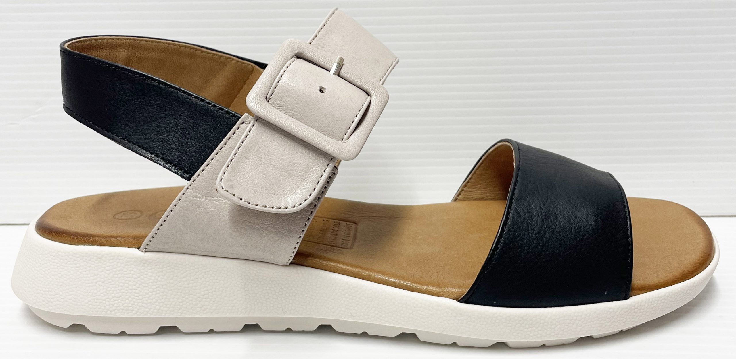 Crafted with a soft leather upper and footbed, Pepe features an adjustable Velcro strap with a stylish buckle and contrasting colour straps. With a subtle wedge heel, this style is perfect for summer.
