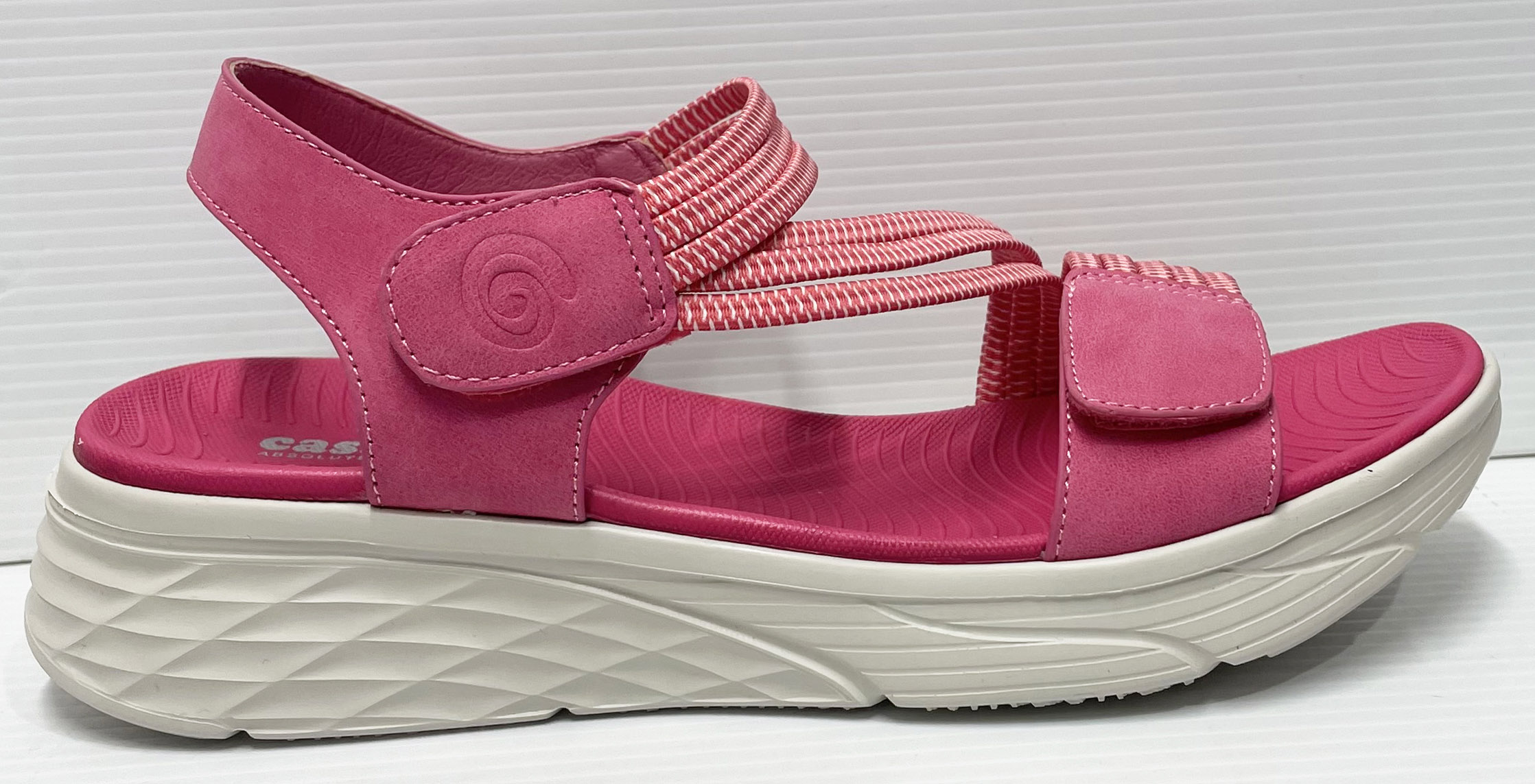 Sporty and supportive, the Menova sandal features a cushioned platform sole, elastic straps, and adjustable closures for all-day comfort on the go.