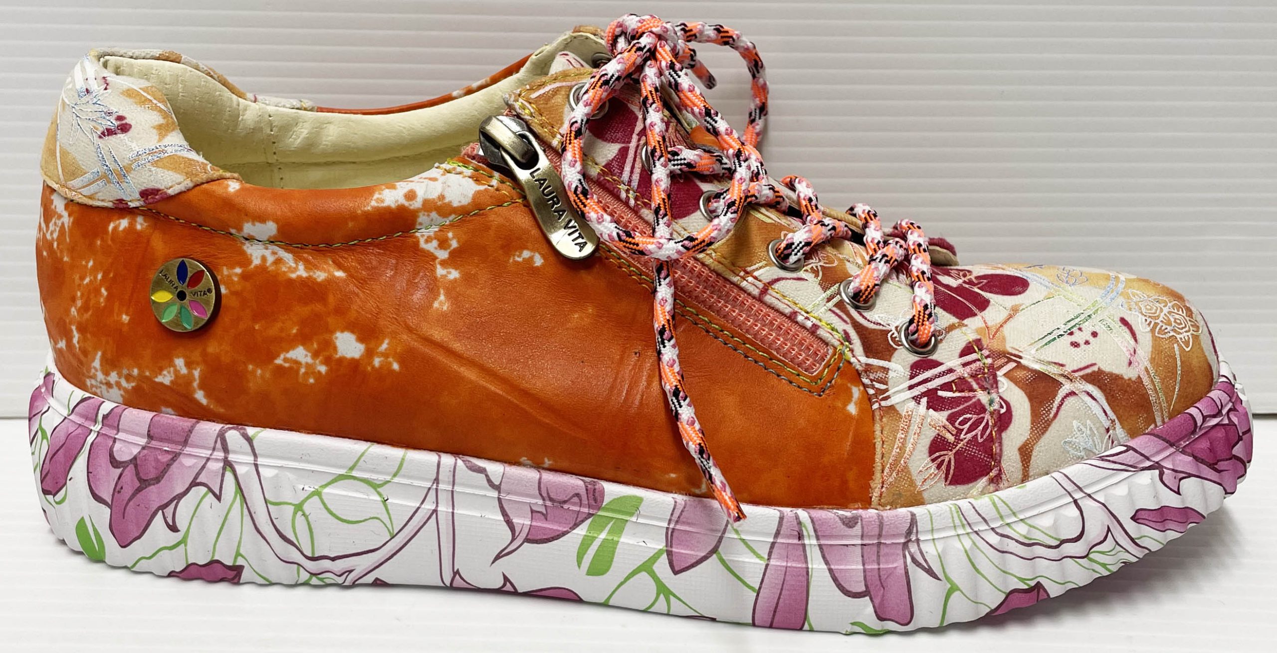 Since its establishment in 2004 in France, Laura Vita has devoted itself to offer all modern women an alternative choice in shoes. Tired of the never-ending trends of black white and beige, this brand decided to bring life and happiness back in a unique way. Quickly Laura Vita established itself with its eclectic style and dedication to comfort. Laura Vita flats, shoes, sandals and boots mix colours, trends, unique fabrics with skilful craftsmanship, creating its own personality and confirming its dream, which is to offer every woman a bit of light and cheerfulness in their daily life.